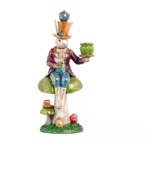 Coniglio Su Fungo Resina Multicolor h 40.5 cm l 20x16 cm