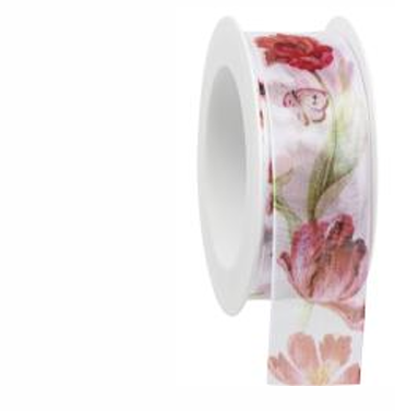 Nastro Organza St Tulpani Rosa h 4 cm l 18 mt