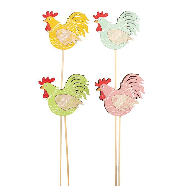 S/12 Stecco Gallina Legno Col. Mix h 35 cm Ø 8 cm